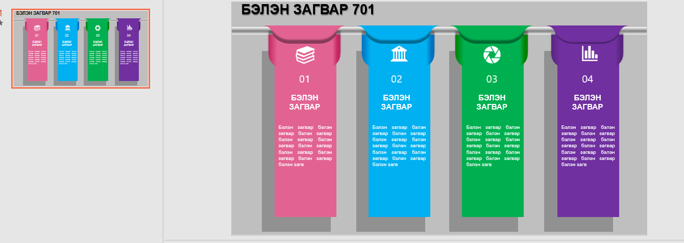 4 агуулгатай инфографик. Өнгө, өгөгдлийг өөрчлөх боломжтой Powerpoint файл.