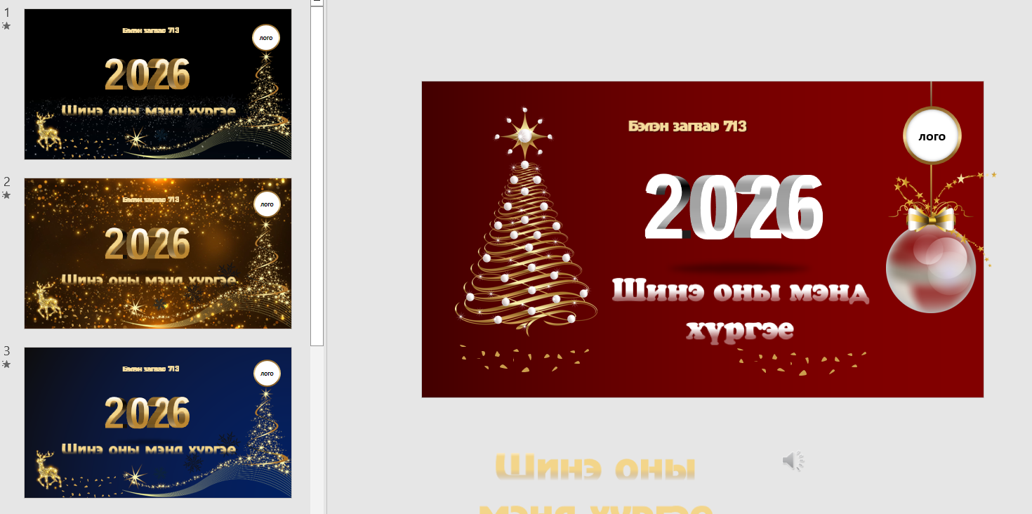 Шинэ жил загвар. Өнгө, өгөгдлийг өөрчлөх боломжтой Powerpoint файл.