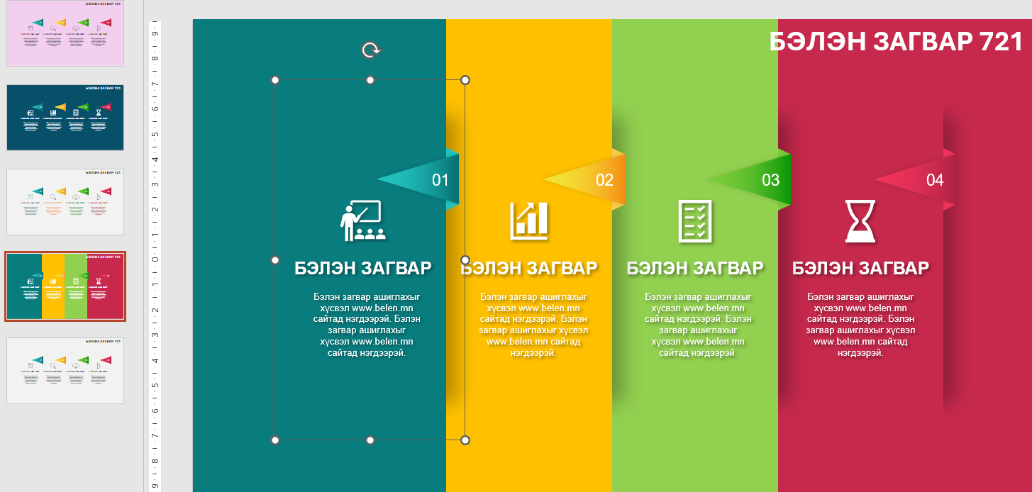 Инфографик загвар. Өнгө, өгөгдлийг өөрчлөх боломжтой Powerpoint файл.