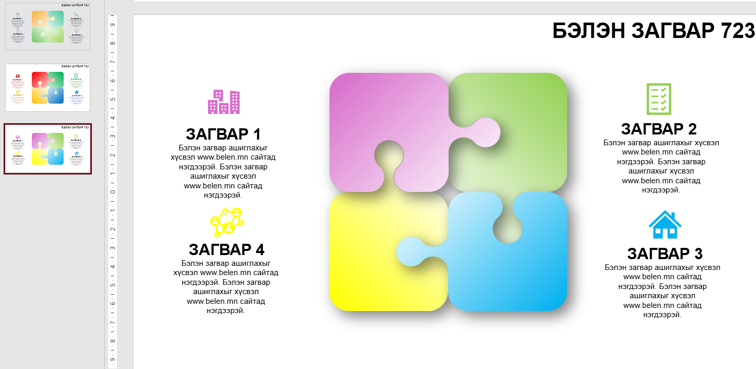 Инфографик загвар. Өнгө, өгөгдлийг өөрчлөх боломжтой Powerpoint файл.